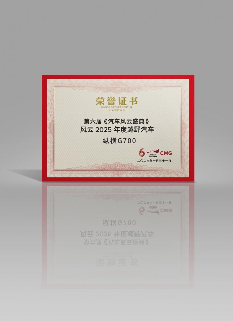 从硬核的机械配置到智能的电控系统,从强劲的动力输出到全领域的路况适配,纵横G700以“技术冗余”为核心,将越野性能与安全守护做到极致。此次斩获《汽车风云盛典》“风云2025年度越野汽车”殊荣,既是对其硬核越野实力的权威认证,更是中国汽车品牌在豪华越野赛道实现“引领”地位的生动佐证。